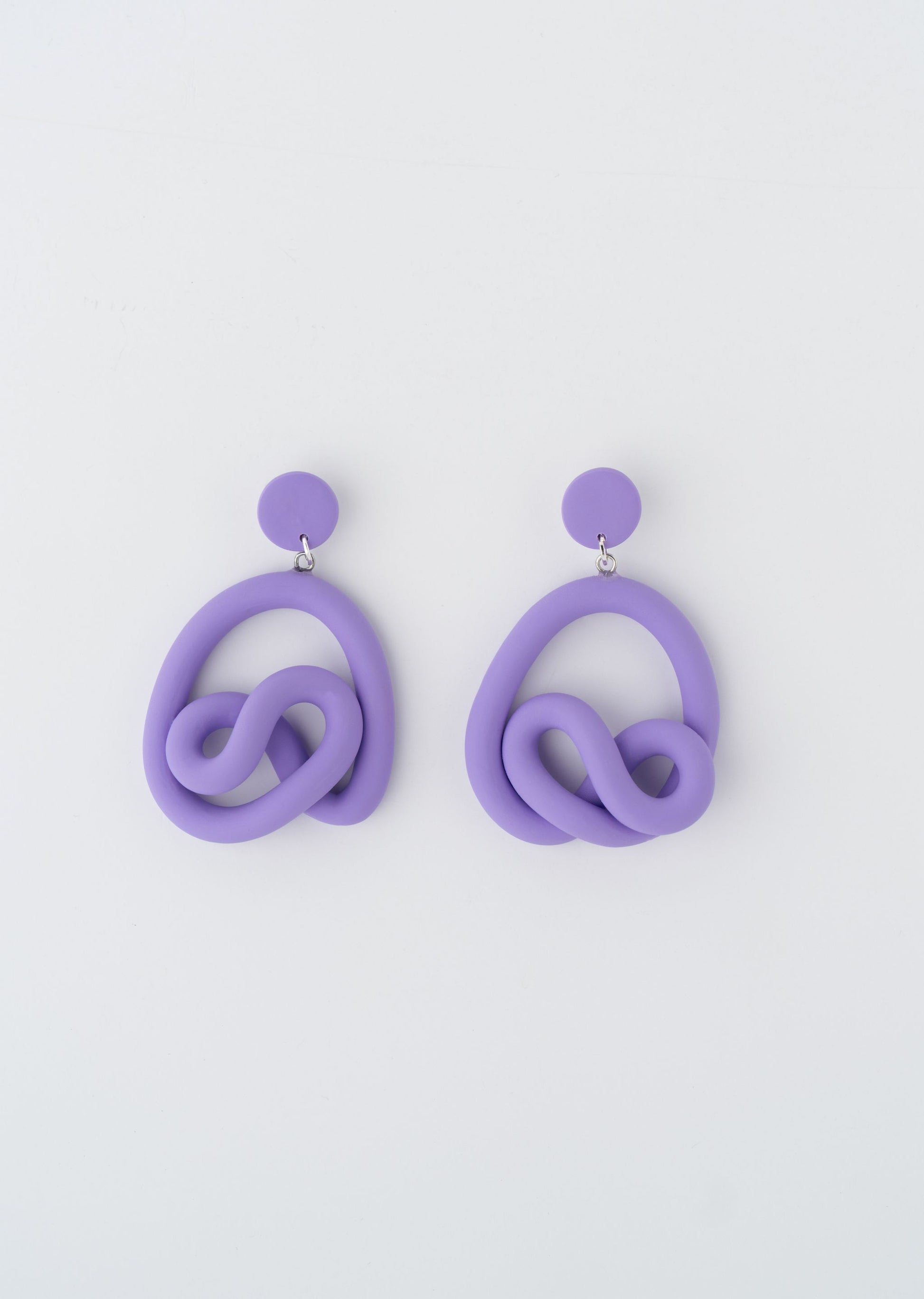 The Gran Nudo earrings showcase a large, intricate knot design, handcrafted in polymer clay. At 6.8 cm, these medium, lightweight earrings make an artistic statement—choose your custom colors for a personal touch.